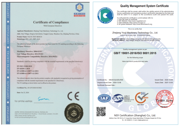 浙江優(yōu)機(jī)閥門(mén)試驗(yàn)臺(tái)車(chē)間的生產(chǎn)線(xiàn)JWZ\JWT\JLTD等系列產(chǎn)品順利更新通過(guò)了歐盟 CE認(rèn)證編號(hào)和ISO9001質(zhì)量管理體........