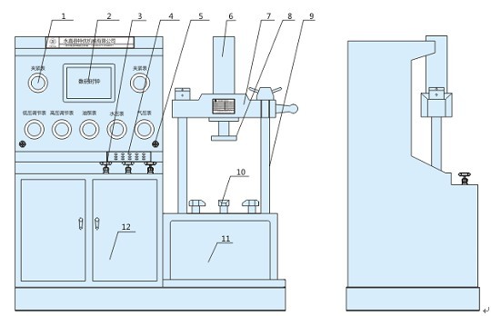 先將供壓泵用的電接點壓力表指針調(diào)節(jié)在所需試壓壓力位置上,關閉<氣壓開關>,然后打開<水壓閥開關>, 按<水泵起動>鈕,即可測試水密封性能的試驗。測試完畢應先打開<泄壓閥開關>排放壓力后卸下被試閥門。