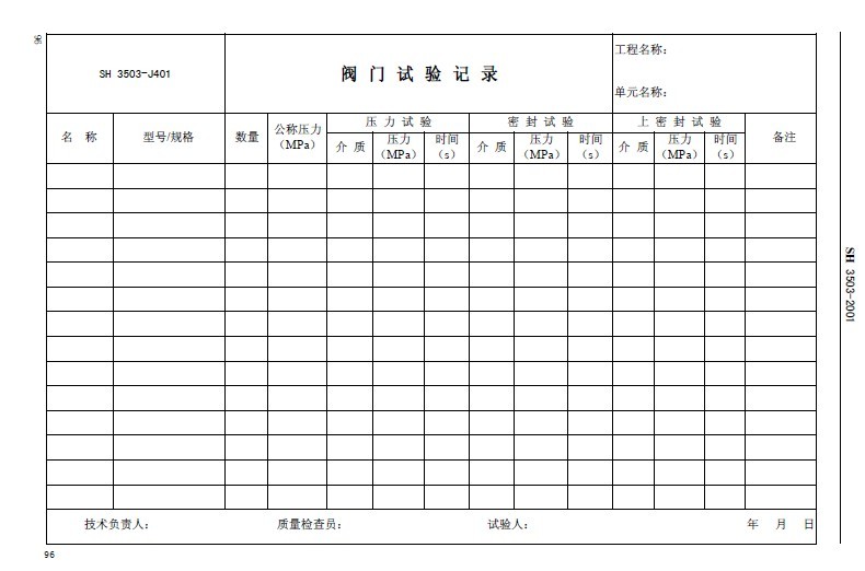 閥門試驗(yàn)表格用于閥門出廠、安裝前閥門試壓檢測的記錄依據(jù),對閥門產(chǎn)品出廠和使用后唯一留底的性能指標(biāo)數(shù)據(jù)檔案,廣大客戶可以下載參考此表格,特優(yōu)機(jī)械-技術(shù)部